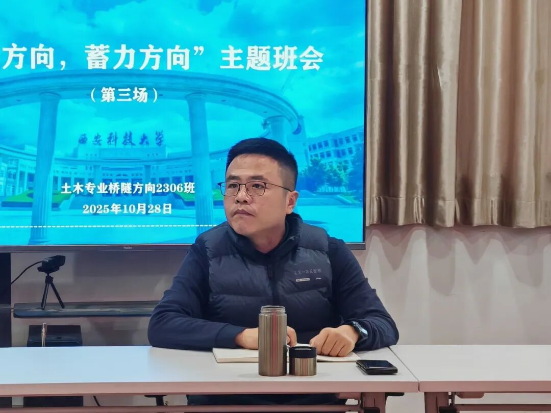 面对当前土建行业的发展趋势与考研人数激增的双重挑战,为引导2027届土木工程专业学生科学规划未来发展,建工学院持续推进“明晰方向,蓄力未来”系列主题班会。10月28日,土木工程专业桥隧方向2306班开展第三场主题班会。会议由辅导员梁博主持,全班30名同学共同参与。