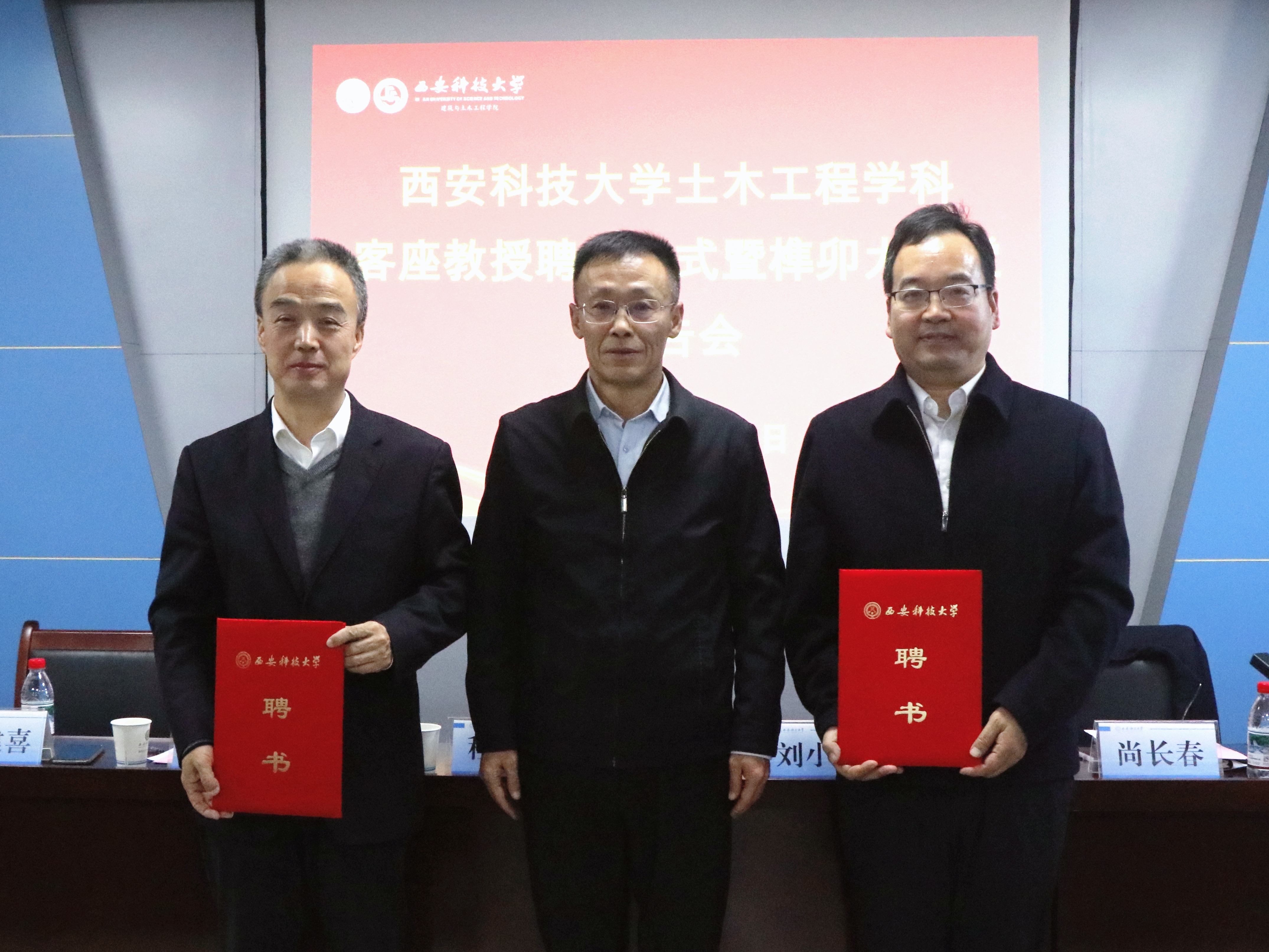11月24日,西安科技大学建筑与土木工程学院在临潼校区骊山校园举行土木工程学科客座教授聘任仪式,陕建控股集团技术与信息化部总经理刘小光、陕西建工集团股份有限公司总工程师时炜正式受聘。聘任仪式由建工学院党委书记尚长春主持,副校长程卫星出席并为刘小光、时炜教授颁发聘书。