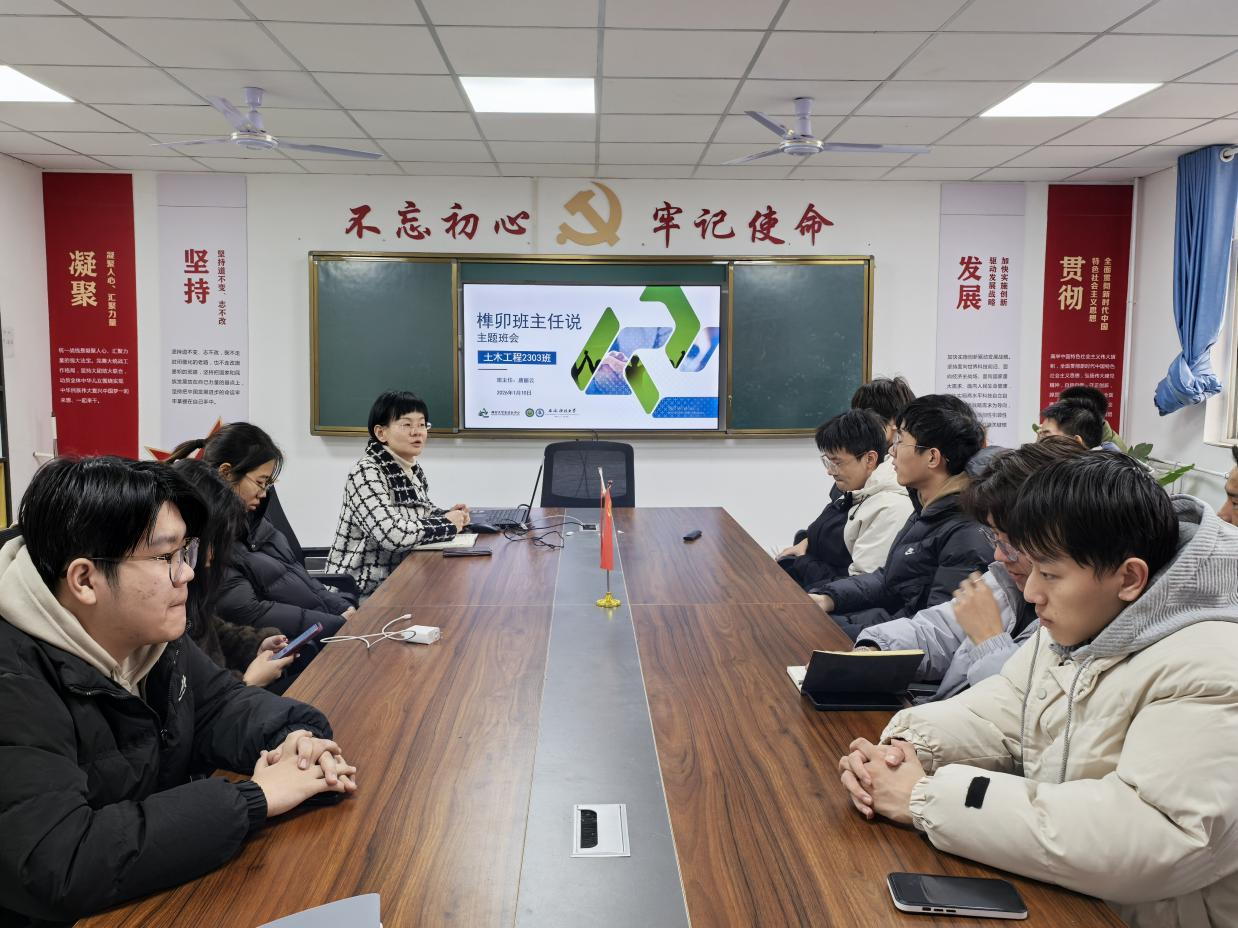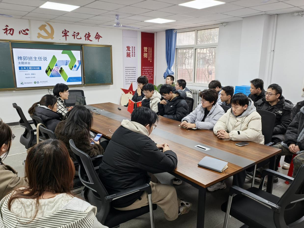 1月10日下午,建工学院土木工程2303班召开主题班会,围绕假期安全、感恩素养、学习提升及就业规划展开指导,由班主任唐丽云老师主持,全班同学参会。