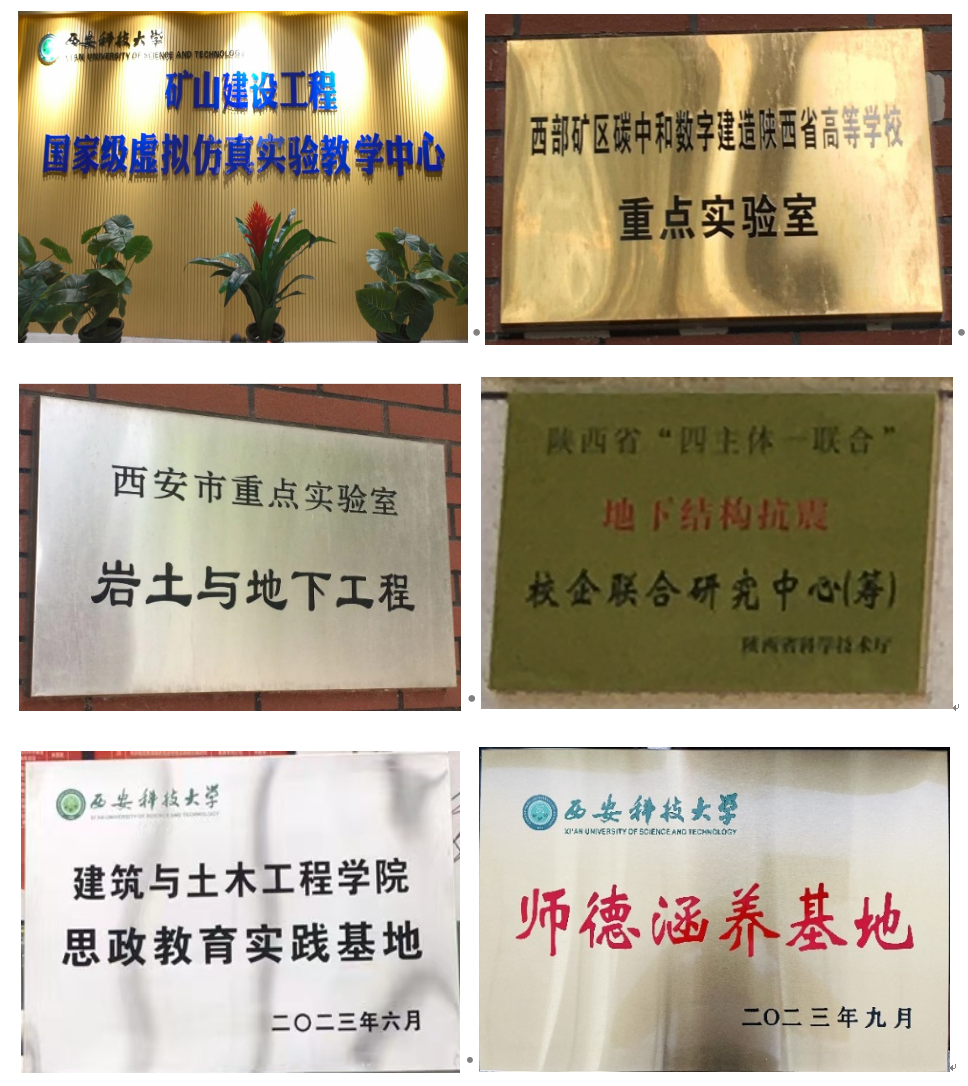 “十四五”期间,实验平台建设步伐显著加快,国家级矿山建设工程虚拟仿真实验教学中心和岩土工程陕西省实验教学示范中心内涵建设取得突破性进展。2022年成功获批“陕西省‘四主体一联合’地下结构抗震校企联合研究中心”,2024年新增“西部矿区碳中和数字建造陕西省高等学校重点实验室”,2023年“西安市岩土与地下工程重点实验室”顺利通过验收,2023年获批校级师德涵养基地。目前,形成了“1个国家级+3个省级+N个专业实训中心”的多层次实验平台体系,教学及科研服务能力大幅度提升。